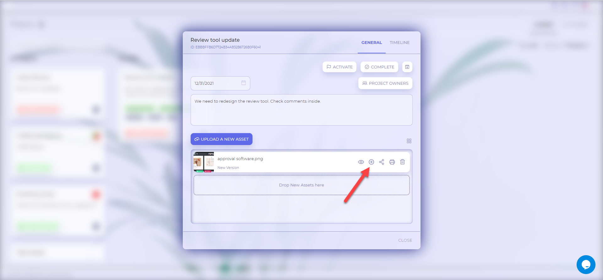 Open the project, and clink on Add New Version to the right from the needed artwork.