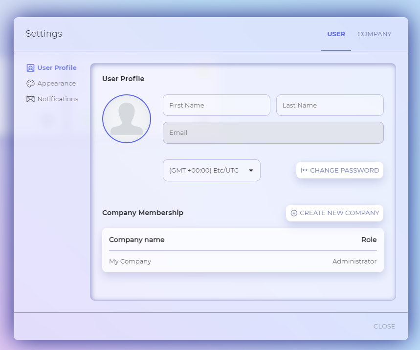 To access the adminitration\settings screen, just go to the upper right corner and click on your profile image.
